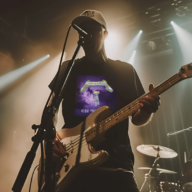 Crowds roar like fallen angels, fists raised to the sky, Bass line echoing deep, where our darkest passions lie.